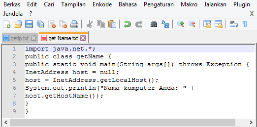 bawah ini save dengan nama seperti nama classnya yaitu getip.java